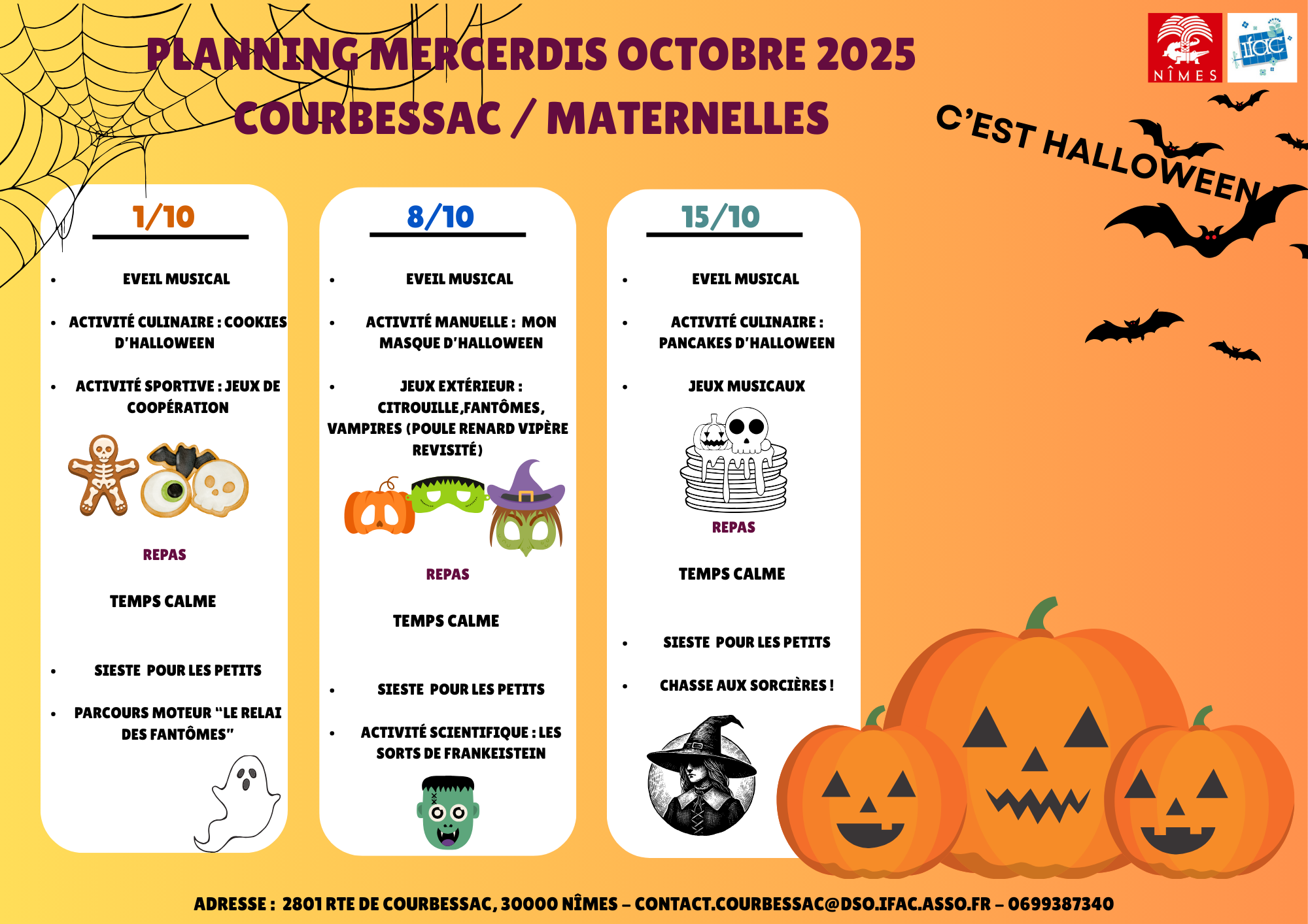 Accueil > Actualités > Plannings JDO Courbessac_ mercredis octobre 2025_ 3/11 ans Plannings JDO Courbessac_ mercredis octobre 2025_ 3/11 ans Planning Découvrez le planning de l’accueil JDO COURBESSAC pour les mercredis d’octobre 2025 Téléchargez nos programmes Planning de l'accueil COURBESSAC pour les mercredis d'octobre 2025 Planning de l'accueil JDO pour les mercredis d'octobre 2025